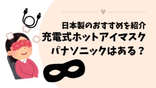 「ホットアイマスクの充電式買うならパナソニックがいいな」「充電式ホットアイマスクで日本製のおすすめはある?」結論から言うと、ホットアイマスクの充電式は、現在パナソニックでは販売していません。(生産終了)充電式ホットアイマスクで日本メーカー製...